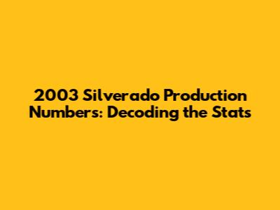2003 Silverado Production Numbers: Decoding The Stats