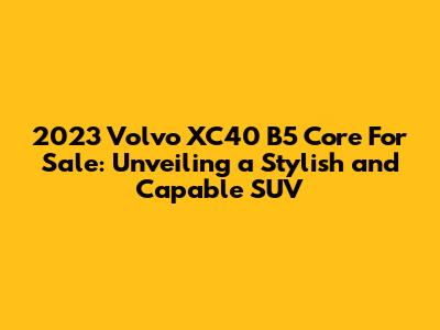 Hey there, car enthusiasts! Are you on the hunt for a compact SUV that blends style, performance, and practicality? Well, buckle up, because we're diving deep into the 2023 Volvo XC40 B5 Core for sale, a vehicle that's been making waves in the automotive world. This isn't just another SUV; it's a statement. It's about embracing a lifestyle that values safety, sustainability, and a touch of Scandinavian flair. Let's explore why the 2023 Volvo XC40 B5 Core might just be your perfect match. We'll cover everything from its impressive features and performance to where you can find one and what to expect when you're ready to make it yours. So, whether you're a seasoned Volvo aficionado or new to the brand, this guide is packed with all the info you need. Let’s get started and find out if the 2023 Volvo XC40 B5 Core is the right ride for you, shall we?