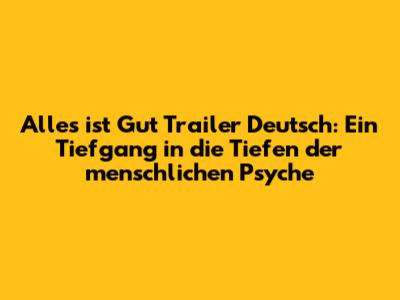 Hey guys, lass uns mal über den "Alles ist Gut" Trailer auf Deutsch quatschen! Dieses Ding ist nicht einfach nur ein Film-Teaser, nein, das ist ein echter Brocken für die grauen Zellen, der uns direkt in die komplexen Abgründe menschlicher Beziehungen und innerer Kämpfe zieht. Der Trailer gibt uns einen Vorgeschmack auf eine Geschichte, die sich nicht scheut, die unbequemen Wahrheiten anzupacken. Wir reden hier von Themen, die uns alle auf die eine oder andere Weise betreffen, wie Vertrauen, Verrat, und die oft schwierige Suche nach Wahrheit in einer Welt, die so vielschichtig ist wie ein gutes altes Puzzle. Die Art und Weise, wie der Trailer die Atmosphäre aufbaut, mit düsteren Bildern und angedeuteten Dialogen, lässt schon erahnen, dass wir hier keine leichte Kost serviert bekommen. Aber genau das macht es doch so spannend, oder? Wir werden in eine Welt entführt, in der nichts so ist, wie es scheint, und die Charaktere müssen sich ihren Dämonen stellen, während sie versuchen, die Wahrheit hinter einer Fassade der Normalität zu enthüllen. Der Trailer deutet an, dass es um persönliche Dramen und unerwartete Wendungen geht, die die Zuschauer von der ersten bis zur letzten Sekunde fesseln werden. Es ist die Art von Film, die einen noch lange nach dem Abspann beschäftigt und zum Nachdenken anregt. Die deutsche Synchronisation scheint dabei eine wichtige Rolle zu spielen, um die emotionale Tiefe und die Nuancen der Charaktere perfekt einzufangen. Wenn du also Bock auf einen Film hast, der dich packt und nicht mehr loslässt, dann halt dich bereit für "Alles ist Gut"!