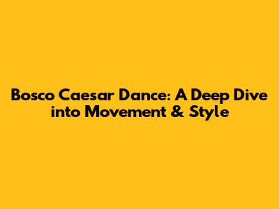 Bosco Caesar Dance: A Deep Dive Into Movement & Style