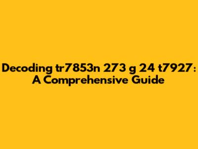Alright, folks, let's dive deep into the cryptic world of "tr7853n 273 g 24 t7927." You might be scratching your heads, wondering what this jumble of characters and numbers actually means. Well, buckle up, because we're about to unravel it together. This guide is designed to be your go-to resource for understanding everything related to this specific code or identifier. We'll explore potential meanings, possible applications, and even some troubleshooting tips if you're encountering this code in a technical context.