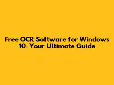 Free OCR Software For Windows 10: Download & Guide