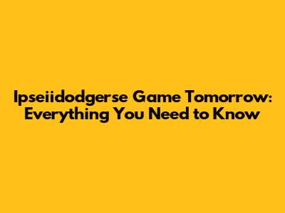 Ipseiidodgerse Game Tomorrow: Everything You Need To Know