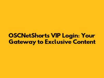 OSCNetShorts VIP Login: Your Gateway To Exclusive Content