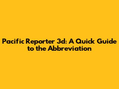 Pacific Reporter 3d: A Quick Guide To The Abbreviation