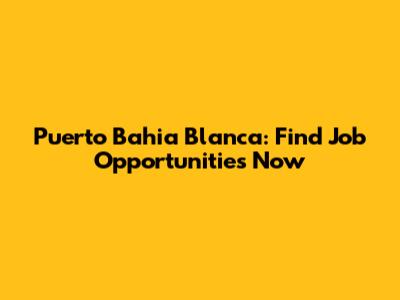Are you looking for puerto bahia blanca trabajo? You've come to the right place! This bustling port city in Argentina offers a range of employment opportunities. Whether you're a seasoned professional or just starting your career, understanding the job market in Puerto Bahia Blanca can significantly improve your chances of landing your dream job. Let's dive into what makes this city a hotspot for employment and how you can navigate the job search process effectively.