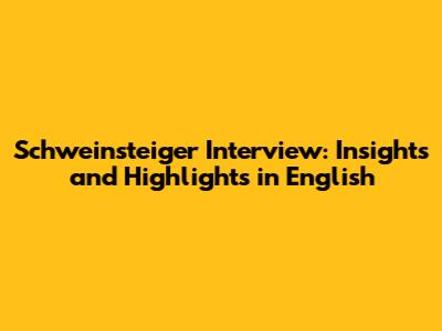 Schweinsteiger Interview: Insights And Highlights In English