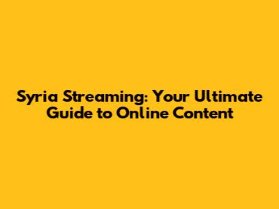 Understanding Syria Streaming and Its Significance