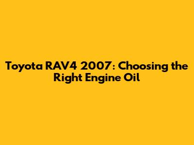 Hey guys! Let's dive into something super important for keeping your 2007 Toyota RAV4 running smoothly: engine oil. Choosing the right oil is like giving your car the best possible care, and it can seriously impact its performance and lifespan. We're going to break down everything you need to know, from the recommended oil types to how often you should be changing it. So, buckle up and let's get started!