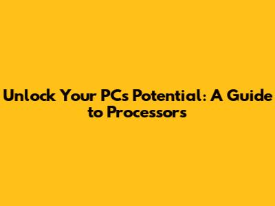 Unlock Your PC's Potential: A Guide To Processors