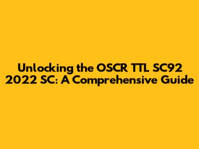 Unlocking The OSCR TTL SC92 2022 SC: A Comprehensive Guide