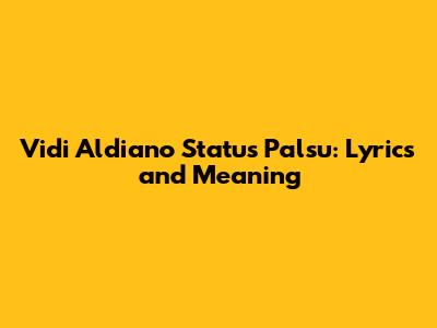 Hey guys! Ever found yourself humming a tune and suddenly realizing, "Wow, this song really hits home?" Well, that's exactly the feeling you get when you listen to Vidi Aldiano's "Status Palsu." This song isn't just a catchy melody; it's a raw and honest look at relationships, appearances, and the often-fake world we navigate, especially online. Let's dive deep into the lyrics and uncover the meaning behind this powerful song.