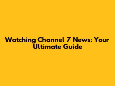 Watching Channel 7 News: Your Ultimate Guide