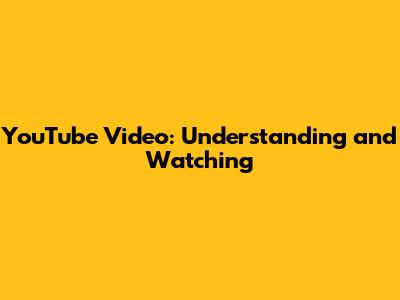 YouTube Video: Understanding And Watching